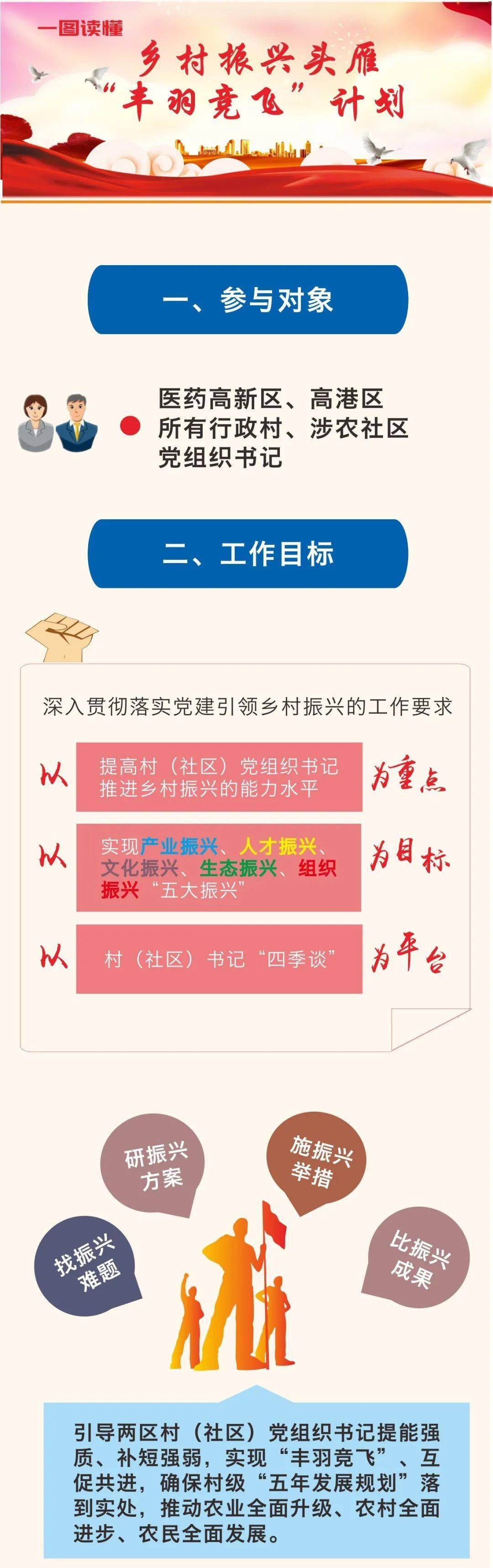 导读:为切实提升新一届村(社区)党组织书记的能力水平全面推进乡村振兴落实村级“五年发展规划”近日,医药高新区、高港区启动乡村振兴头雁“丰羽竞飞”计划乘风破浪的乡村振兴带头人
