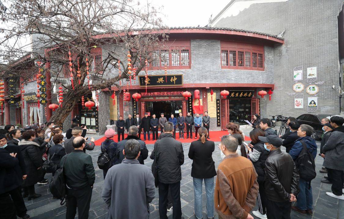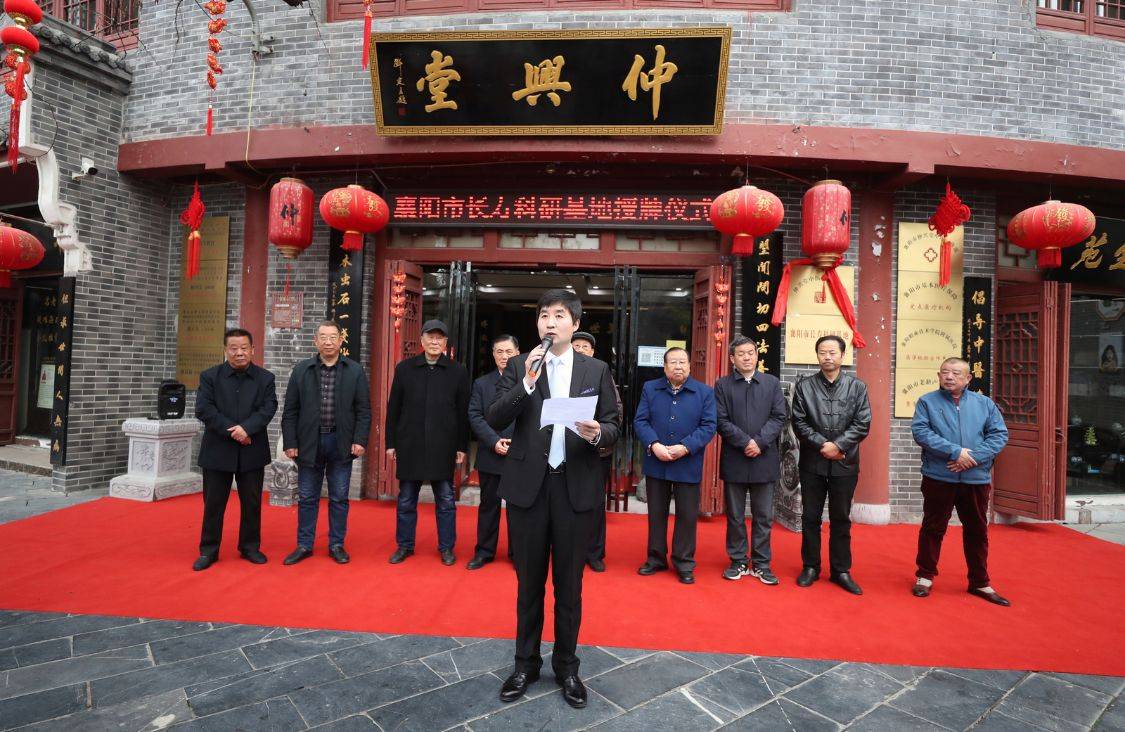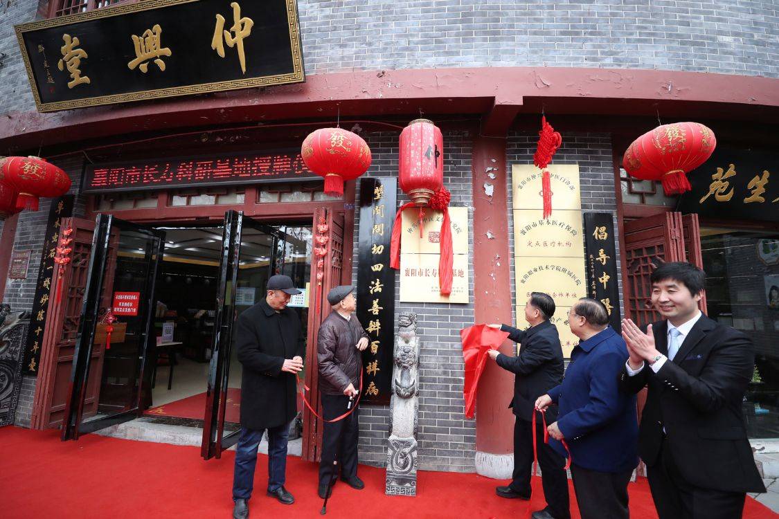 襄阳市政协原主席胡久明、襄阳市政协原主席万桃元、襄阳市委原副书记张振华、襄阳军分区原司令马正武、仲兴堂中医文化研究院、襄阳市仲兴堂中医门诊部负责人张柯,共同为“襄阳市长寿科研基地”揭牌。